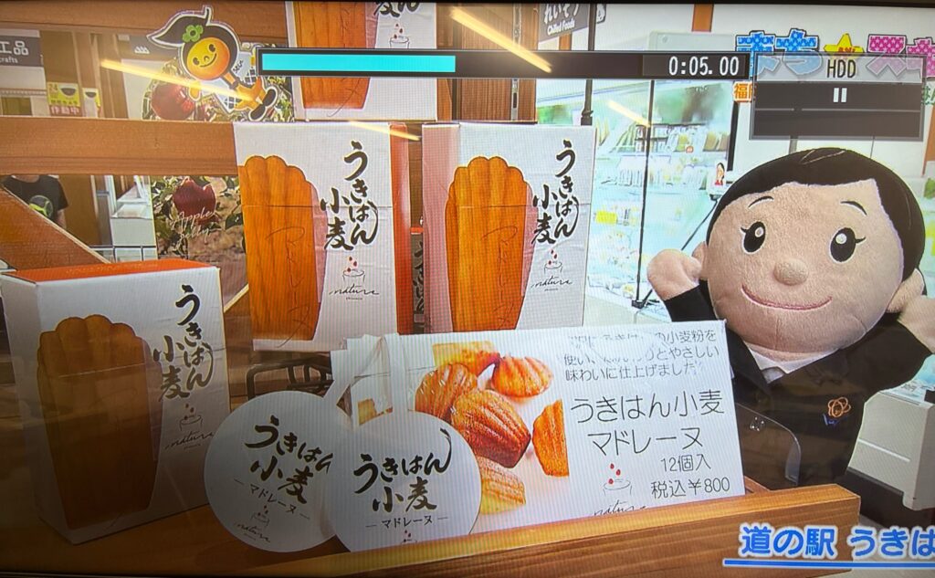 ④ 「道の駅うきは」、「うきはん小麦」使用の商品(マドレーヌ・そうめん)紹介など